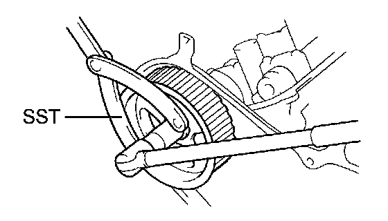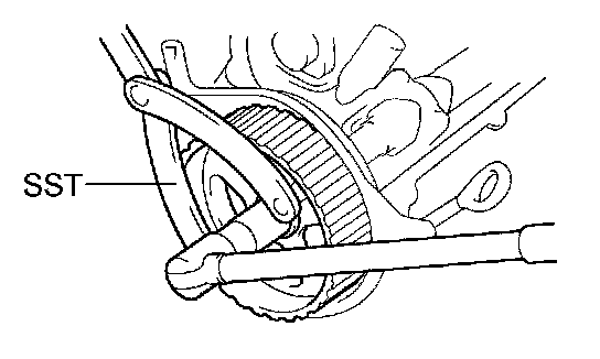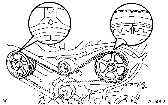 HINT: Arrange the camshaft timing pulleys (RH and LH sides) so that they can be returned to the original locations when re-assembling.