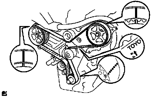 b. If re-using the timing belt, check that there are 3 installation marks on the timing belt as shown in the illustration.