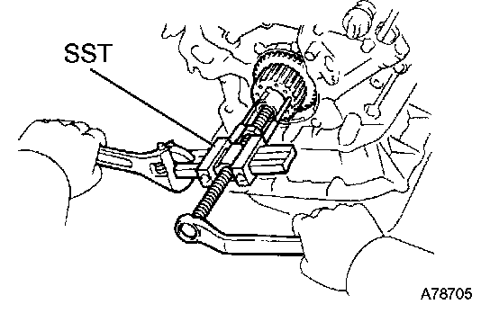 22. REMOVE CAMSHAFT TIMING PULLEY