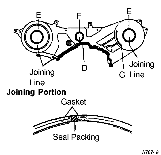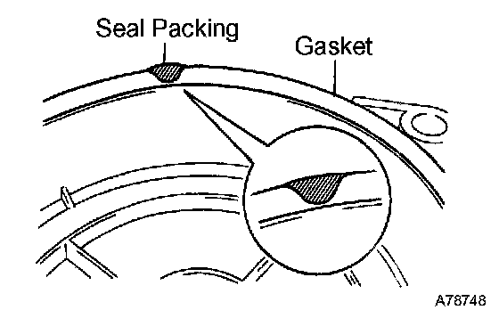 NOTICE: When applying the seal packing, apply it as wide and high as the gasket.
