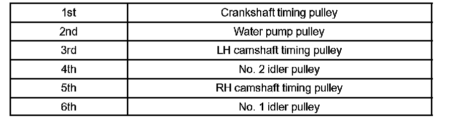 ^ Face the belt guide of the LH timing pulley toward rear of the engine.