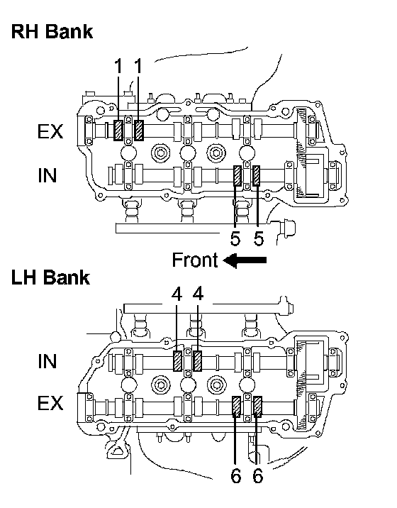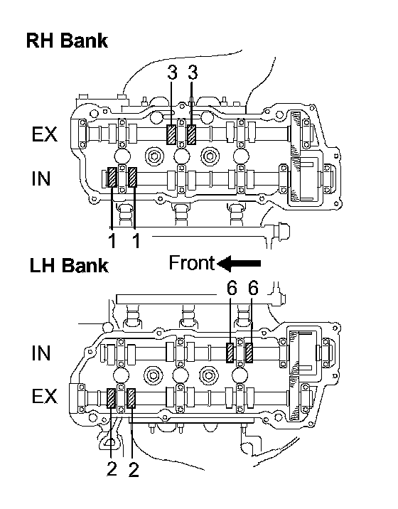 2. Record out-of-specification valve clearance measurements. They will be used later to determine the required replacement adjusting shim.
