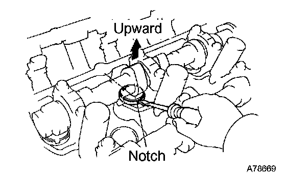 b. Turn the valve lifter with a screwdriver so that the notches are perpendicular to the camshaft.