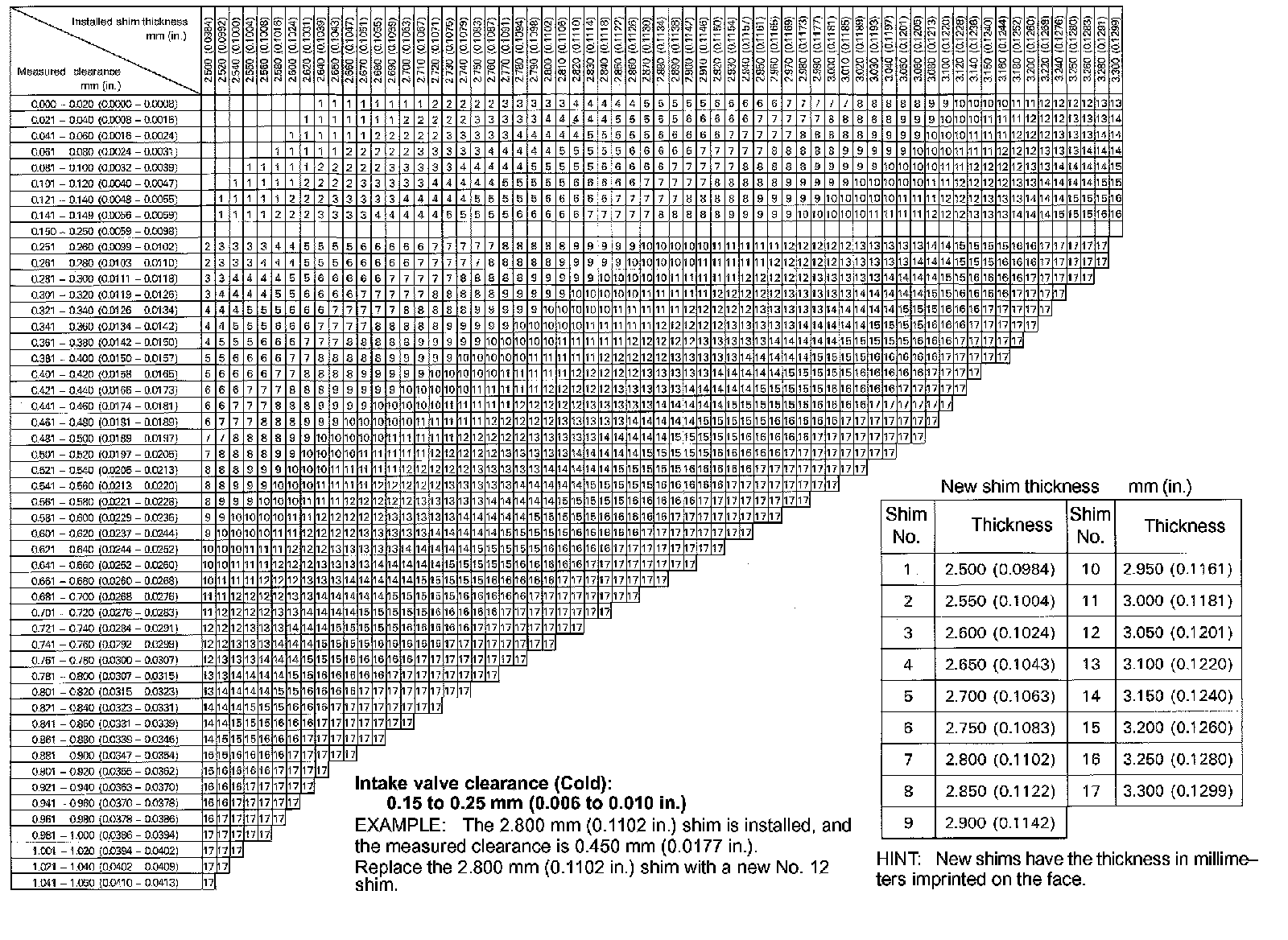 f. Calculate the thickness of a new shim so the valve clearance comes within the specified value.
