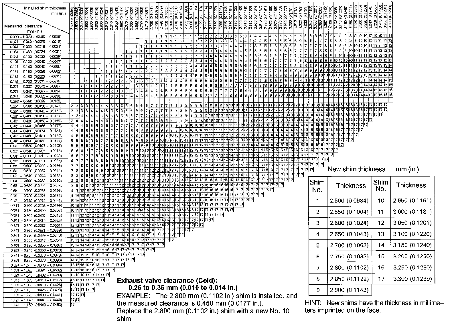 Exhaust 0.25 to 0.35 mm (0.010 to 0.014 inch)