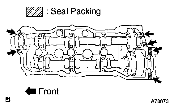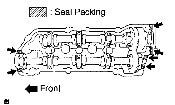 b. Apply seal packing to the cylinder head as shown in the illustration.
