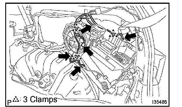 a. Disconnect the 5 connectors, release the 3 clamps and separate the wire harness.