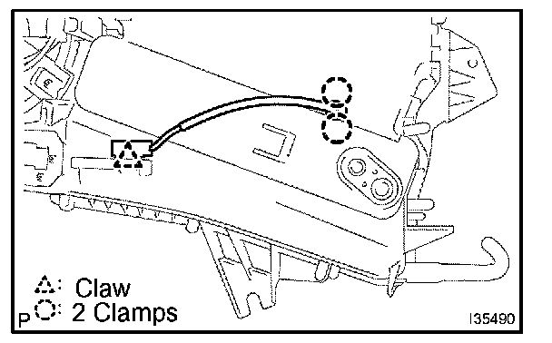 b. Using pliers, grip the claws of the 2 clips and slide the clip to disconnect the 2 heater hose.