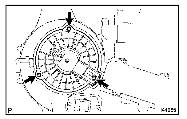 b. Remove the 3 bolts and the air conditioning blower assembly.