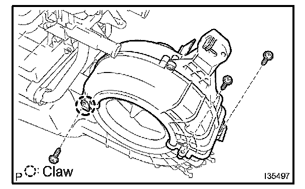 a. Remove the 2 clips and the air duct assembly from air conditioning blower assembly.