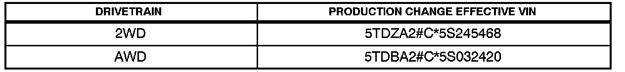 ^ 2004 - 2005 model year Sienna vehicles produced BEFORE the Production Change Effective VINs shown below.