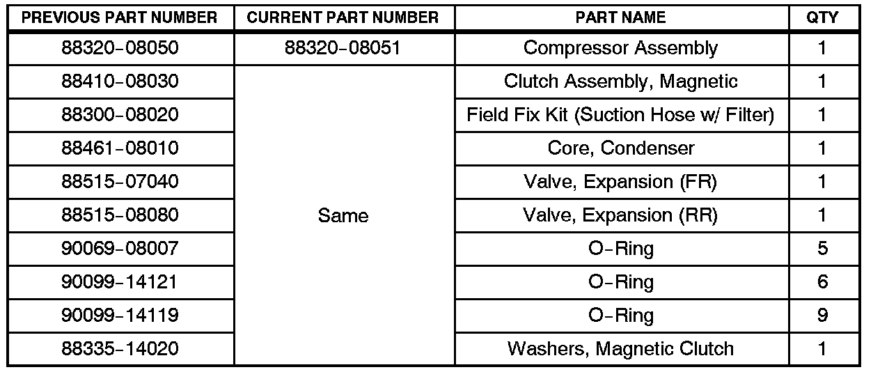 To improve the durability of repairs on 2004 - 2005 model year Sienna vehicles, a new suction tube and in-line filter system is now available. Please follow the procedures in this bulletin if the compressor is being replaced because of a noise concern and/or has seized.