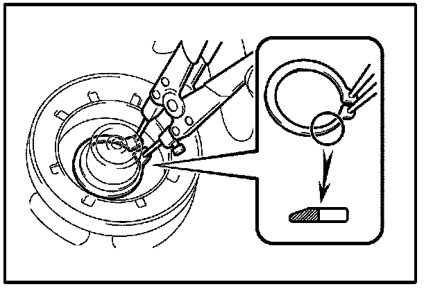 B. Using a snap ring expander, install a new snap ring with the chamfered side facing up.
