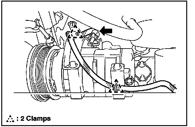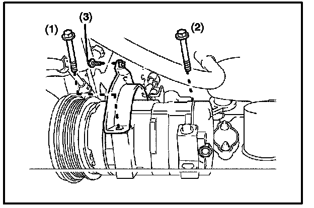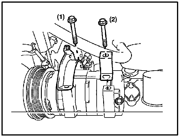 A. Install the compressor and the magnetic clutch, the stay, and bracket with the 2 bolts.