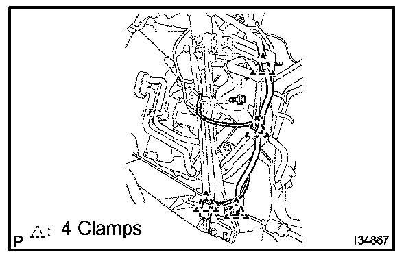 HINT: Make sure the direction of the piping clamp claw and SST by checking the illustration shown on the caution label.
