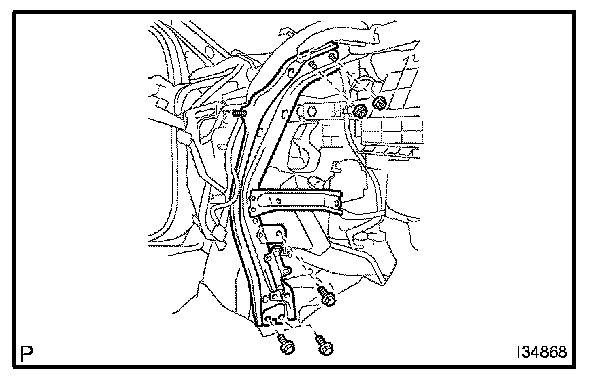 a. Remove the 2 screws and the air conditioning radiator bracket No.2.