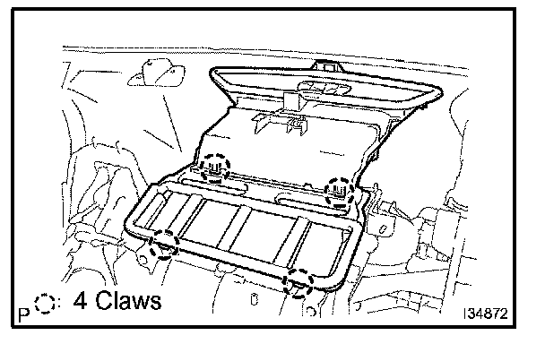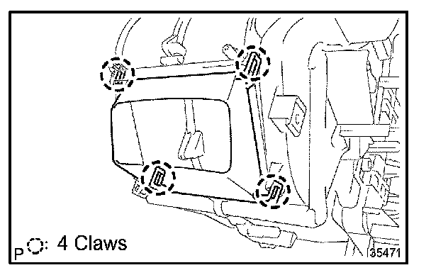 a. Release the 4 claw fittings and remove the defroster nozzle assembly lower.