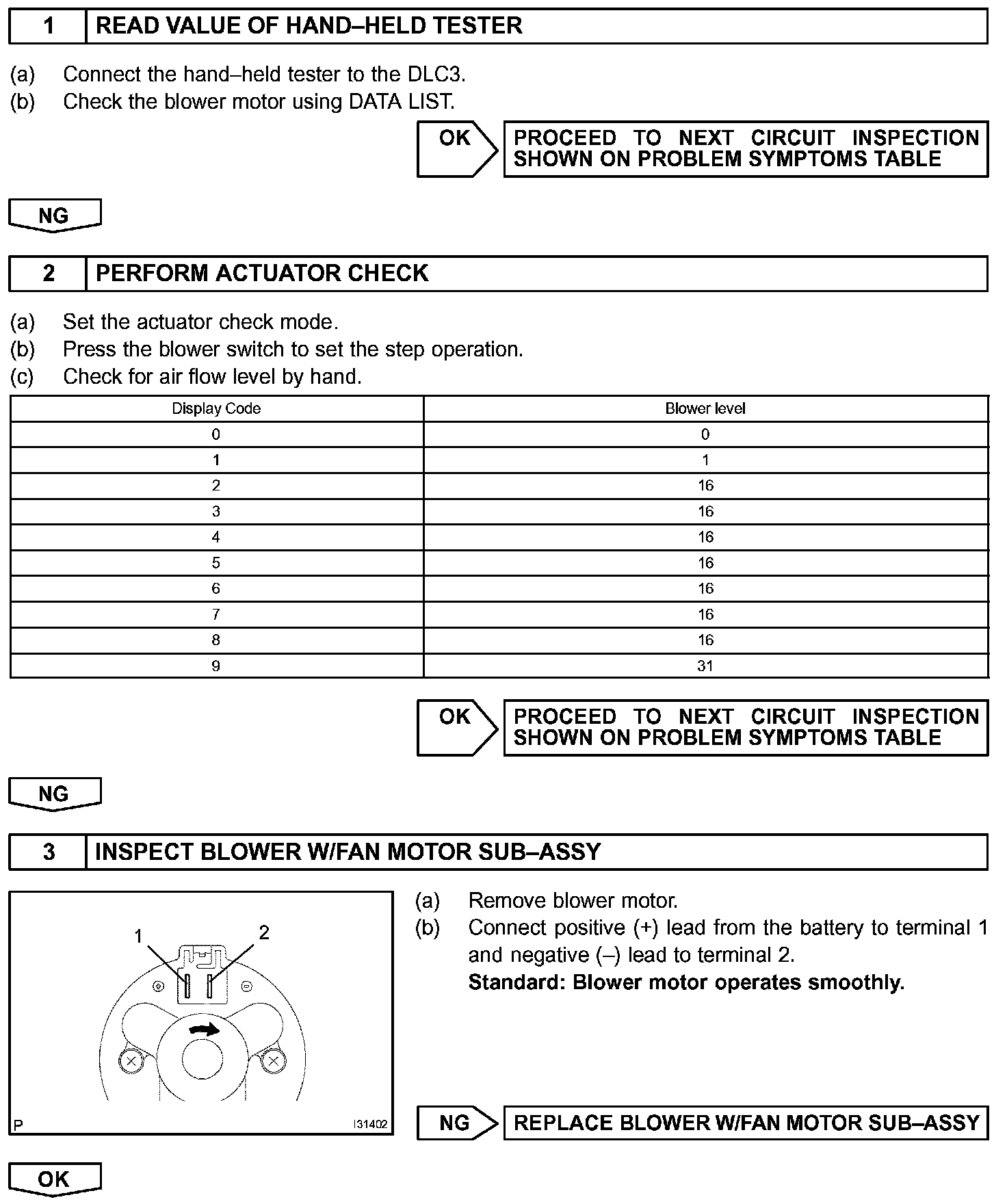 HINT: In case of using the hand-held tester, start the inspection step 1 and in case of not using the hand-held tester, start from step 2.