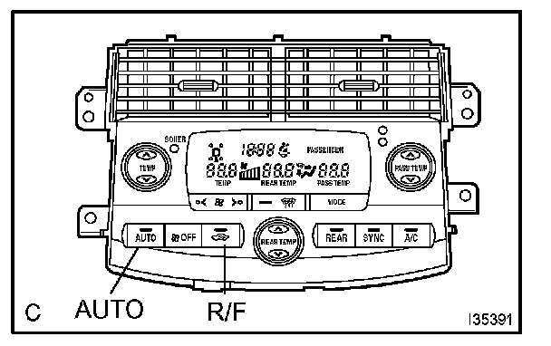 INDICATOR CHECKa. Turn the ignition switch ON while pressing the A/C control AUTO switch and R/F switch simultaneously.
