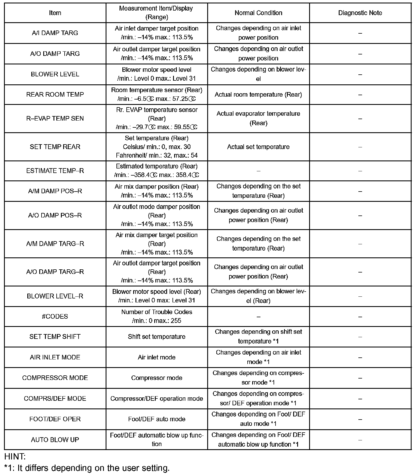 DATA LISTHINT: From to the DATA LIST displayed by hand-held tester, you can read the value on the display, sensor, actuator and so on without parts removal. Reading the DATA LIST as the first step of troubleshooting is one way to shorten the labor time.