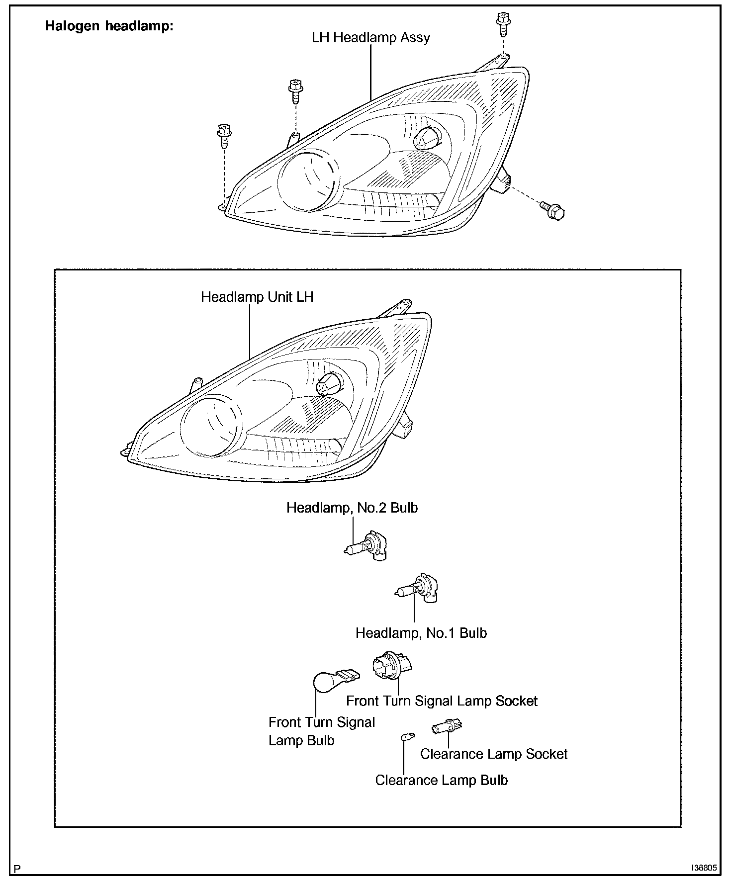 a. Remove the headlamp, No.1 bulb.