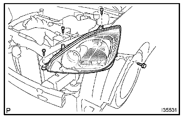 b. Remove the bolt, the 3 screws and the LH headlamp assembly.