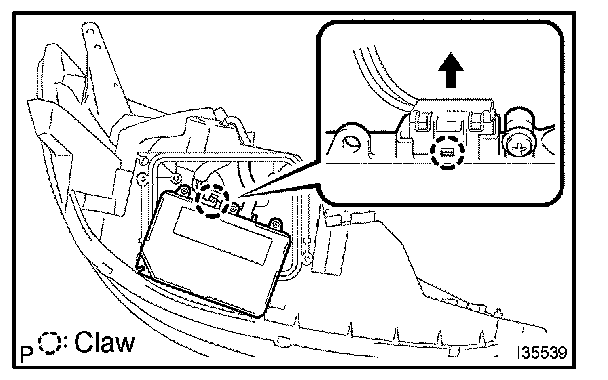 b. Release the lock of the set spring and remove the discharge headlamp bulb.