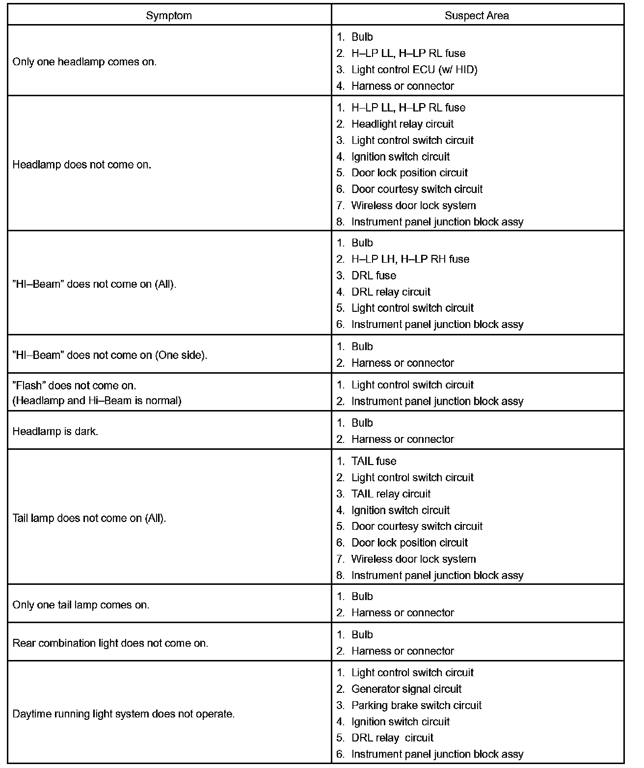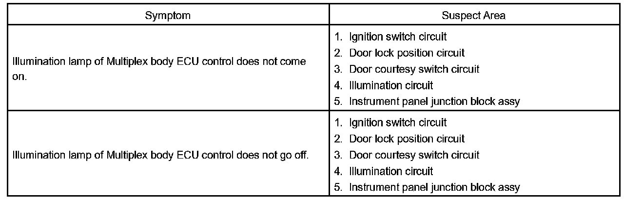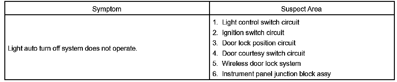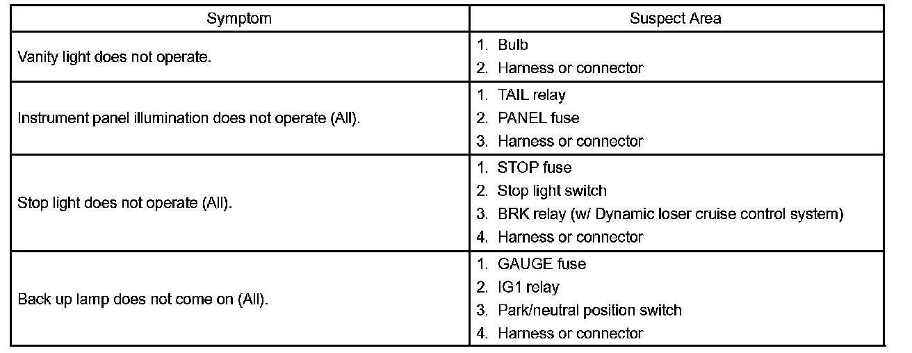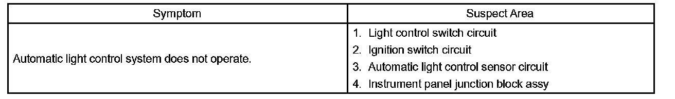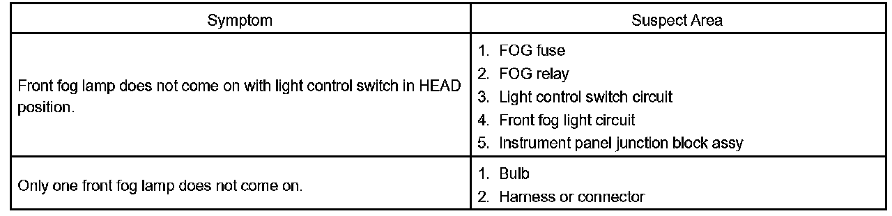 PROBLEM SYMPTOMS TABLEHINT: Proceed to troubleshooting of each circuit in the table.
