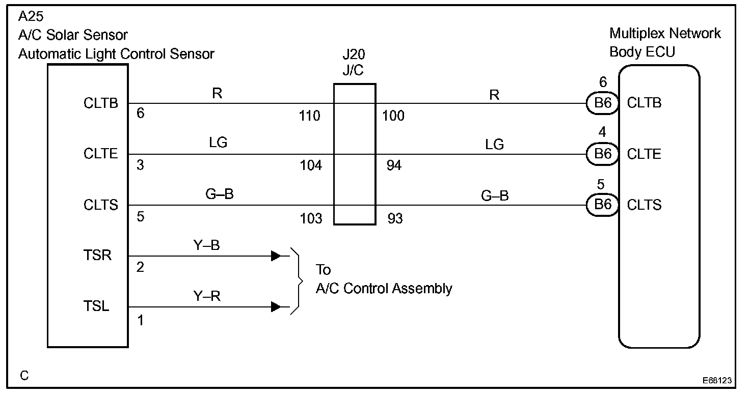 The Multiplex network body ECU receives the signal from the automatic light control sensor.