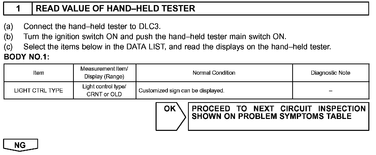 HINT: Start the inspection from step 1 in the case of using the hand-held tester, and start from step 2 in the case of not using the hand-held tester.