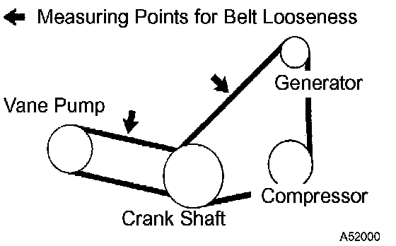 ^ Check the drive belt deflection at the specified point.