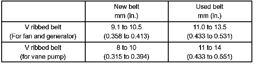 ^ When reinstalling a belt used for over 5 minutes, perform the check based on the used deflection value.