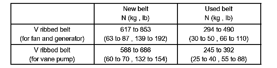 ^ V-ribbed belt tension and deflection value should be checked after 2 revolutions of engine cranking.