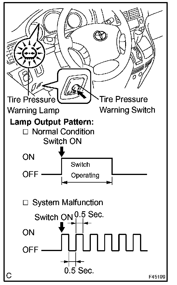 - When the tire pressure warning system has any problem, the tire pressure warning lamp blinks at 0.5 second interval.