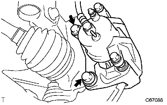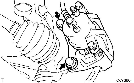 a. Removing the 2 bolts, separate the front disc brake caliper assembly LH from the steering knuckle LH.