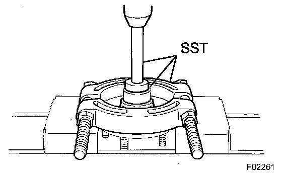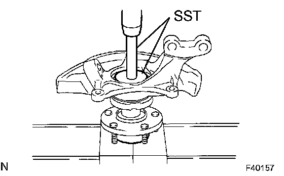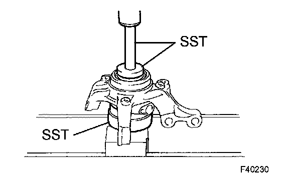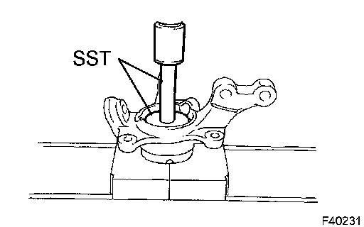 b. Using SST and a press, press the front axle hub LH bearing until it contacts the SST.