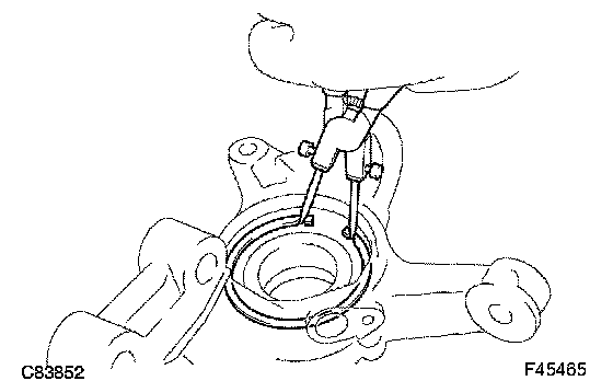 HINT: Align the holes for the ABS speed sensor in the bearing dust deflector No.1 LH with steering knuckle.