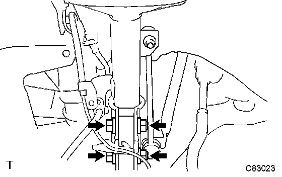 b. Remove the 2 bolts, nuts and steering knuckle LH with the front axle hub sub-assembly LH.