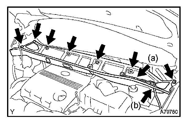 a. Remove the 2 bolts and the cowl top to cowl brace inner No. 1.