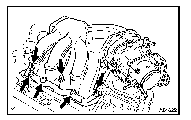 g. Temporarily install 4 bolts which are used to attach the fuel delivery pipe to the intake manifold.