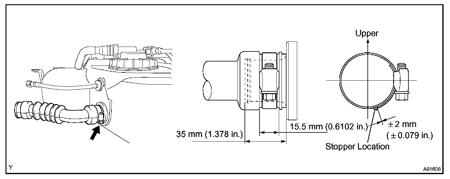 a. Install a new fuel tank to filler pipe hose as shown in the illustration.