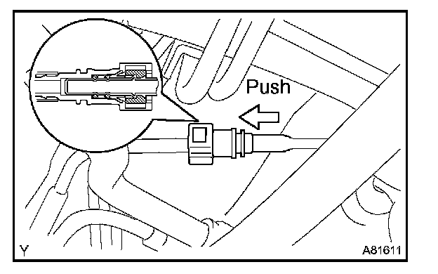 1. Push in the fuel tube connector to the pipe until fuel tube connector makes "click" sound.