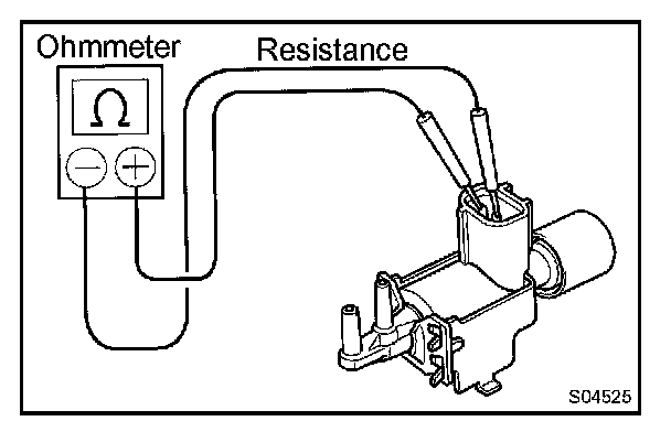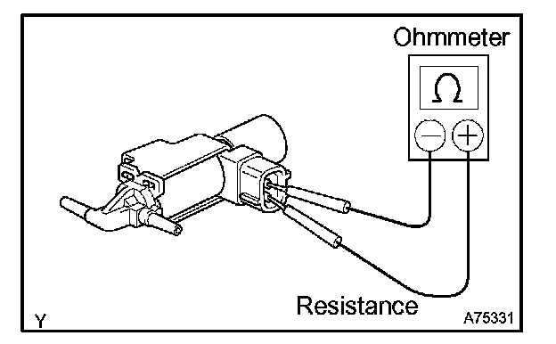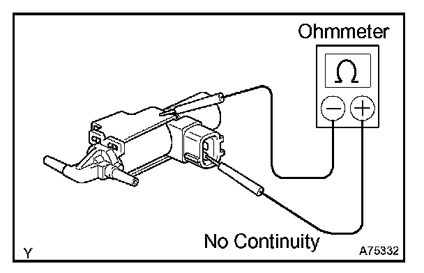 1. Using an ohmmeter, check that there is no continuity between each terminal and the body. If there is continuity, replace the VSV.