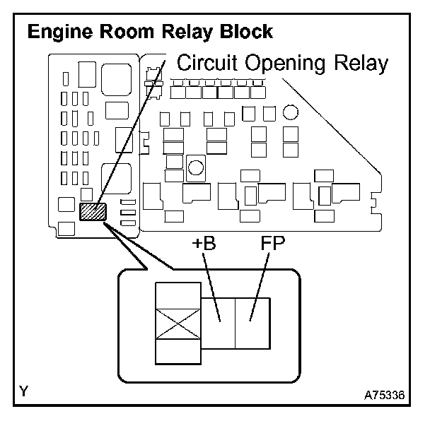 2. Using a service wire, connect terminals FP and +B of the relay block.