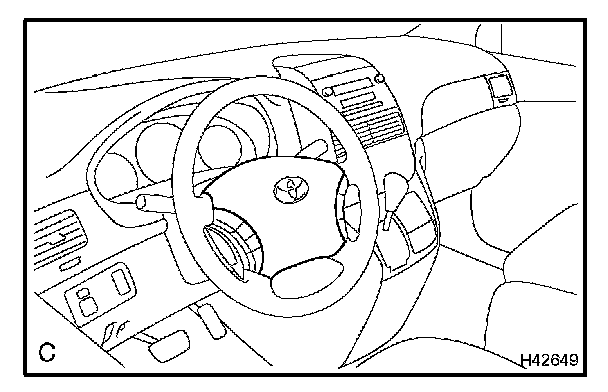 a. Do a visual check which includes the following item with the horn button assembly (with airbag) installed in the vehicle: cuts, minute cracks or marked discoloration on the horn button assembly top surface and in the grooved portion.