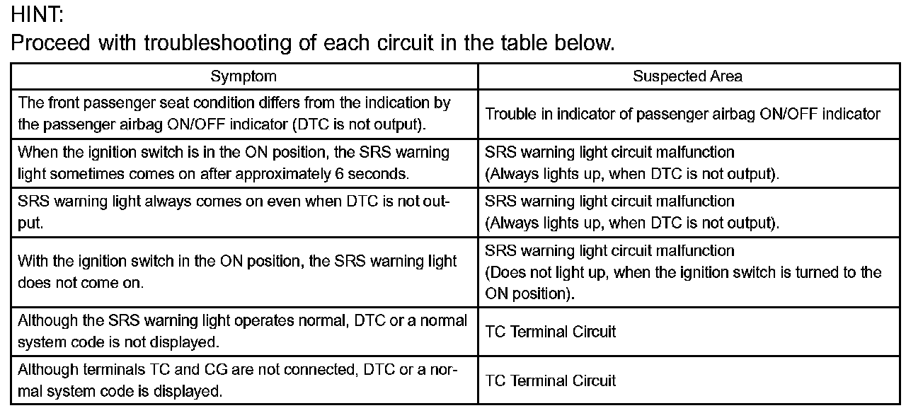 Problem Symptoms Table: