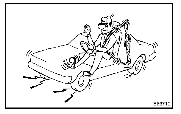 HINT: Conduct this test in a safe area. If the belt does not lock, remove the belt assembly and perform the following static check. Also whenever installing a new belt assembly, verify the proper operation before installation.