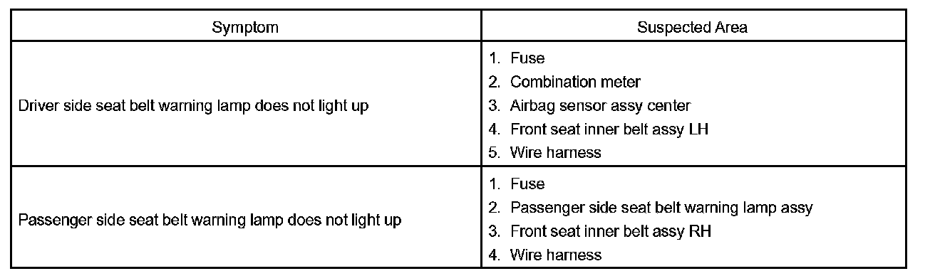 Problem Symptoms Table - Seat Belt Warning System: