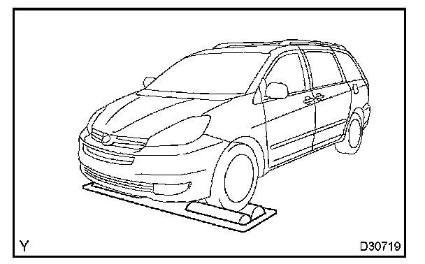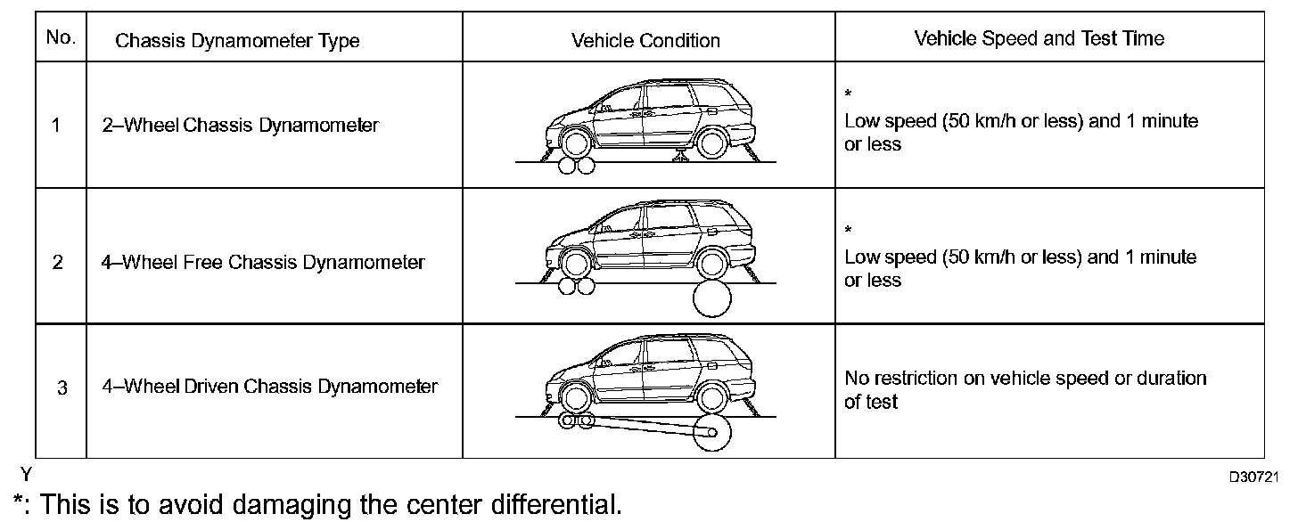 This vehicle does not have a center diff. lock mode or 4WD (Normal) Mode to allow only the front or rear wheel to be rotated. The test method for this vehicle is different from that for vehicles equipped with the center diff. lock mode or 4WD (Normal) Mode, so make sure to use the correct test method.