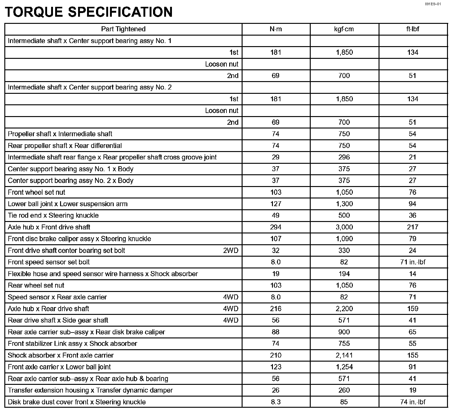Drive Shaft/Propeller Shaft/Axle - Torque Specification: